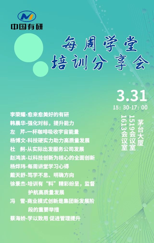 3月31日,中国有研总部部门举办第一季度“每周学堂”培训分享会,11位职能部门干部员工结合8期讲座内容分享了他们的体会和收获。