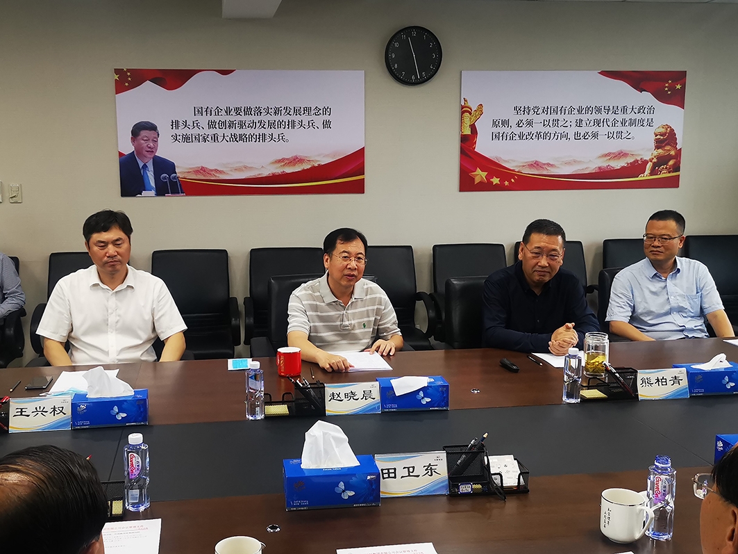 9月5日,德州市委书记田卫东,市委常委、秘书长张安民一行到访有研集团。有研集团党委书记、董事长赵晓晨,总经理、党委副书记熊柏青,副总经理王兴权等陪同交流。