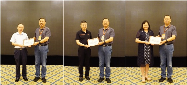 高焕芝代表中国有色金属学会讲话,她充分肯定了第八届材料科学与工程学术委员会付出的努力和取得的成绩,宣读了关于材料科学与工程学委会换届请示的复函。会上选举产生了新一届材料科学与工程学术委员会主任委员、副主任委员、秘书长、副秘书长、委员,成立了第九届材料科学与工程学术委员会。熊柏青当选第九届材料科学与工程学术委员会主任委员,向第九届副主任委员颁发聘书并合影。
