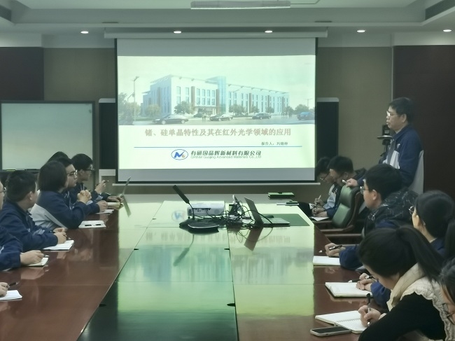 冯德伸带领大家学习了红外光学基础知识以及红外材料的基本特性,重点讲解了公司生产的红外锗单晶和红外硅单晶不同规格产品的性能、应用领域和未来发展趋势,讲座内容深入浅出,与会人员受益匪浅。讲座结束后,大家就讲座内容进行了深入交流,进一步加深了科技人员对讲座内容的理解。