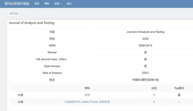 3月20日,《2025年中国科学院文献情报中心期刊分区表》正式发布。有科出版负责出版的RARE METALS(《稀有金属(英文版)》)、Journal of Rare Earths(《稀土学报(英文)》)继续稳居1区、入选Top。Journal of Analysis and Testing(《分析检测(英文)》)新晋1区Top,Tungsten(《钨科技(英文)》)新晋2区,英文期刊影响力提升取得了新的突破。