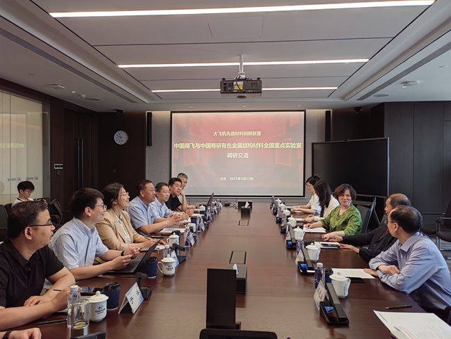 5月28日,中国商飞制造总师、大飞机先进材料创新联盟理事会秘书处秘书长姜丽萍,中国商飞C919型号副总师、大飞机先进材料创新联盟专委会秘书长章骏一行莅临中国有研,与有色金属结构材料全国重点实验室开展调研交流与需求对接。中国有研科技委副主任、有色金属结构材料全国重点实验室主任熊柏青,有研工研院总经理、全国重点实验室执行副主任张永安等陪同调研并参加对接会。