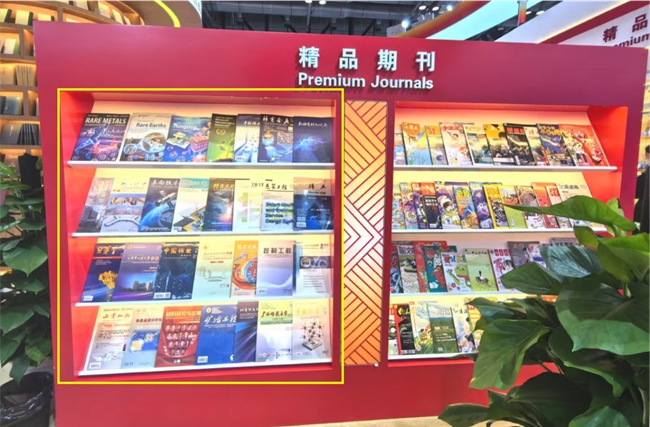有科出版《稀有金属》《稀有金属(英文版)》《中国稀土学报》《稀土学报(英文)》《矿物冶金与材料学报(英文)》《表面技术》等入选“中国科技期刊卓越行动计划二期入选期刊”展览;《钨科技(英文)》《有色金属科学与工程》《黄金》《隧道建设(中英文)》等入选“‘十四五’规划中国期刊精品回顾展”;《链(英文)》入选 “首届中国期刊封面设计精品展”。有科出版工程技术期刊集群代表性期刊的参展,集中展示了我国工程技术领域前沿科研成果,为观众开启一场科技与艺术交融的文化盛宴。