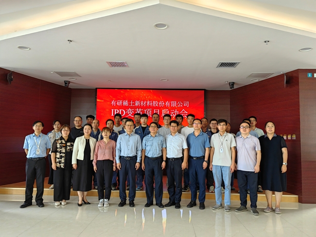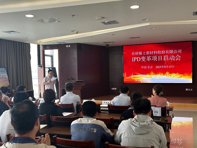 王志强代表公司领导班子作“IPD变革项目启动会”动员讲话,王志强传达中国有研党委书记、董事长赵晓晨在集团第十一次党代会上作的题为《突出核心功能 强化价值创造 奋力谱写中国有研加快建设世界一流企业新篇章》报告精神。当前正处于“十五五”规划全面启动时期,是进一步深化国资国企改革的重要阶段,也是集团高质量发展的战略机遇期。我们要以强烈的责任感、紧迫感高质效推进科技创新,开创价值创造新局面;高标准推进国资国企改革,全面提升现代企业治理和经营管理水平。有研稀土积极响应集团号召,以事业部为试点,以价值创造提升管理质效为目标,开展IPD变革项目,紧密结合事业部发展现状,致力实现高效、集成式新产品开发。