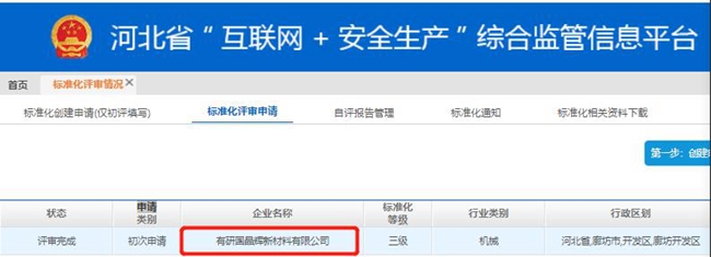 8月11日,廊坊市应急管理局组织评审专家到公司进行现场评审。在评审会议上,公司总经理曹波做了专题汇报。评审组专家通过现场查看、员工询问、资料审核、查证等方式按照各要素进行逐条对照、逐项打分。专家组一致认为,有研国晶辉符合安全生产标准化三级企业的要求,可以通过认证。