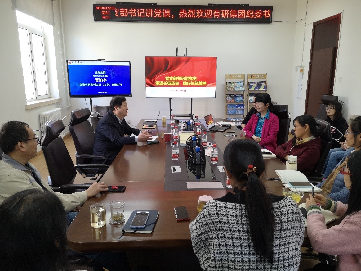 4月13日,有科出版党支部书记钱九红以“重温长征历史,践行长征精神”为题讲党史,并做“坚持‘两个一以贯之’健全中国特色现代企业制度”的主题党课。有研集团党委委员、纪委书记、党史学习教育领导小组副组长曹泊宇到会指导。全体党员、干部职工参加会议。
